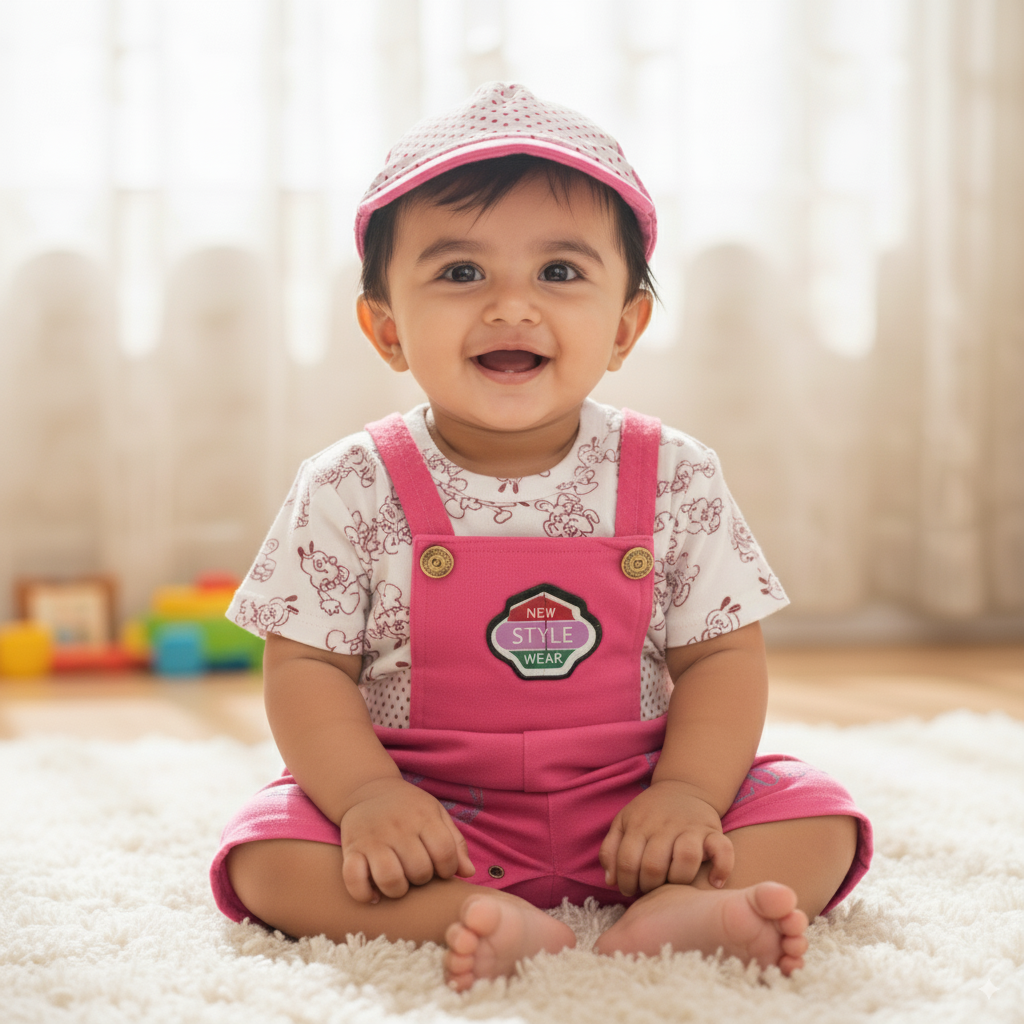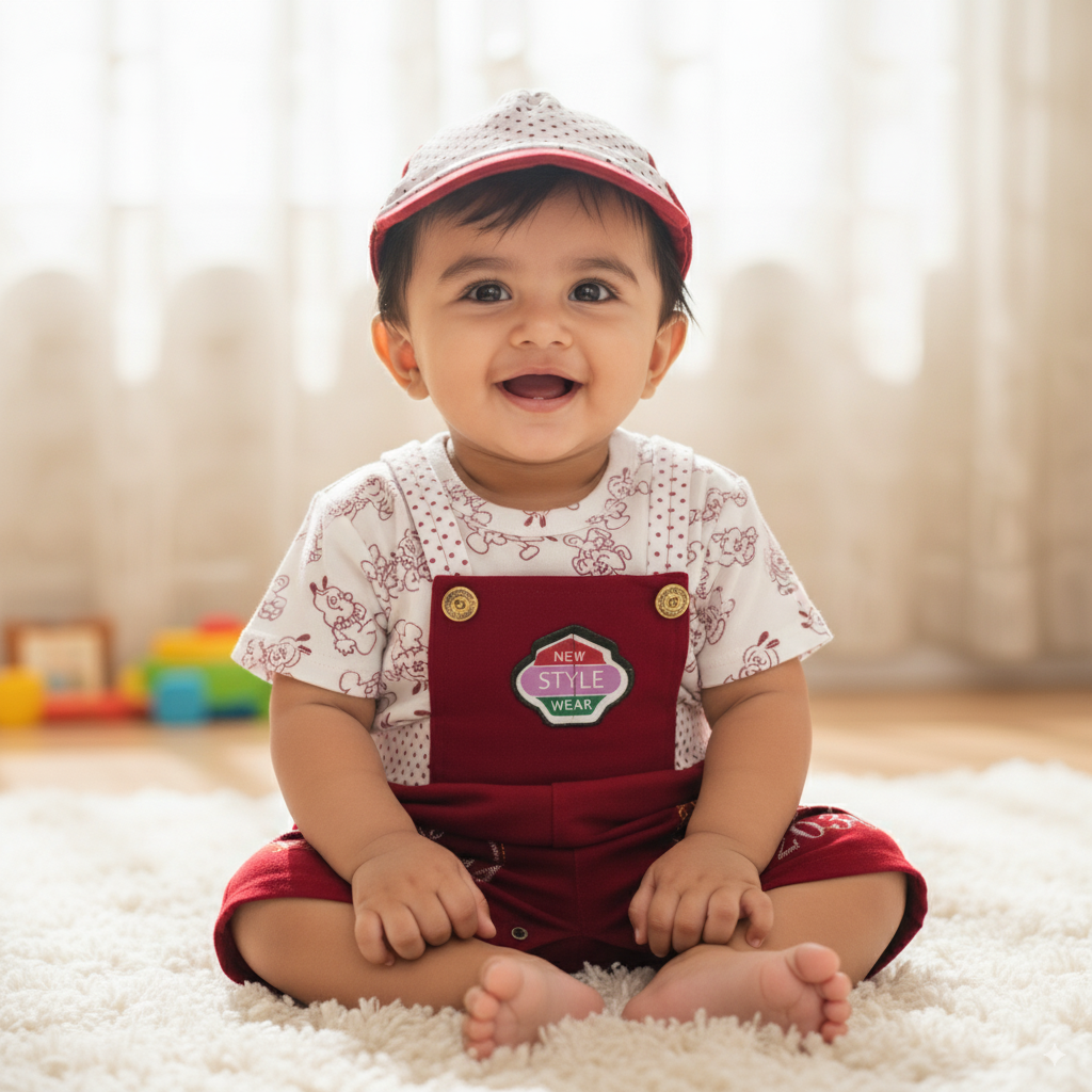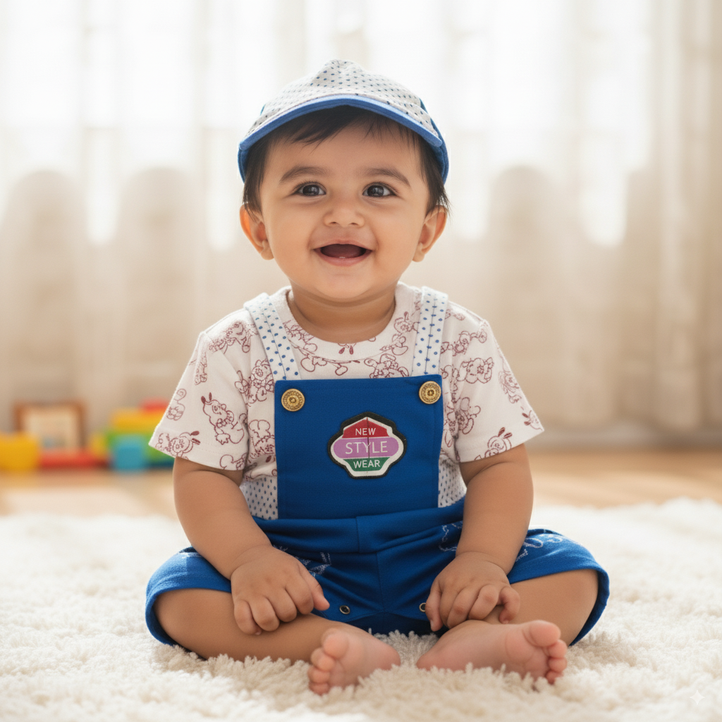 ✅ Includes: T-shirt, Dungaree, and Matching Cap