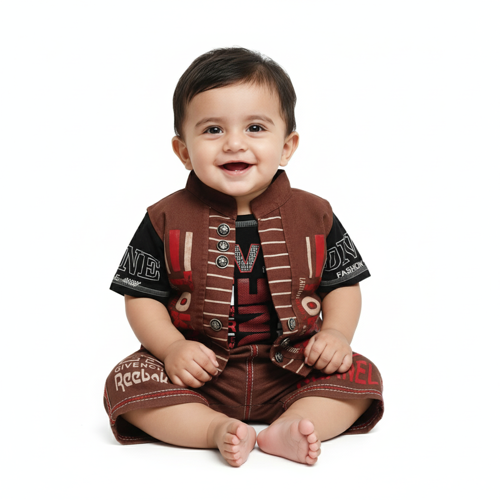 Baby Boy Stylish Shorts Set with Jacket & T-Shirt