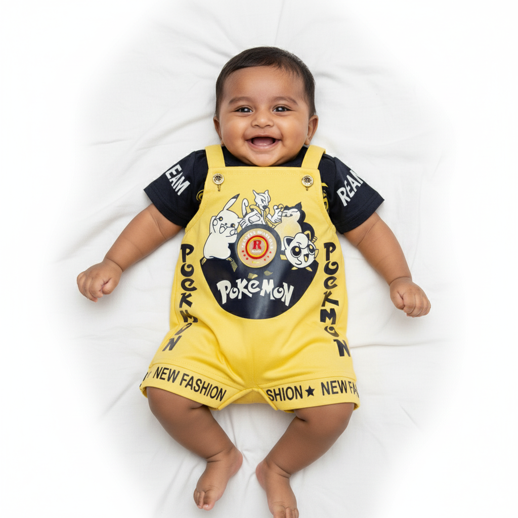 Make your little one stand out with this adorable dungaree set featuring a cartoon print and a matching t-shirt. Designed with soft, breathable fabric, this outfit keeps babies comfy while looking trendy. The dungaree comes with buttoned straps and playful designs, paired with a round-neck t-shirt for a perfect casual look.